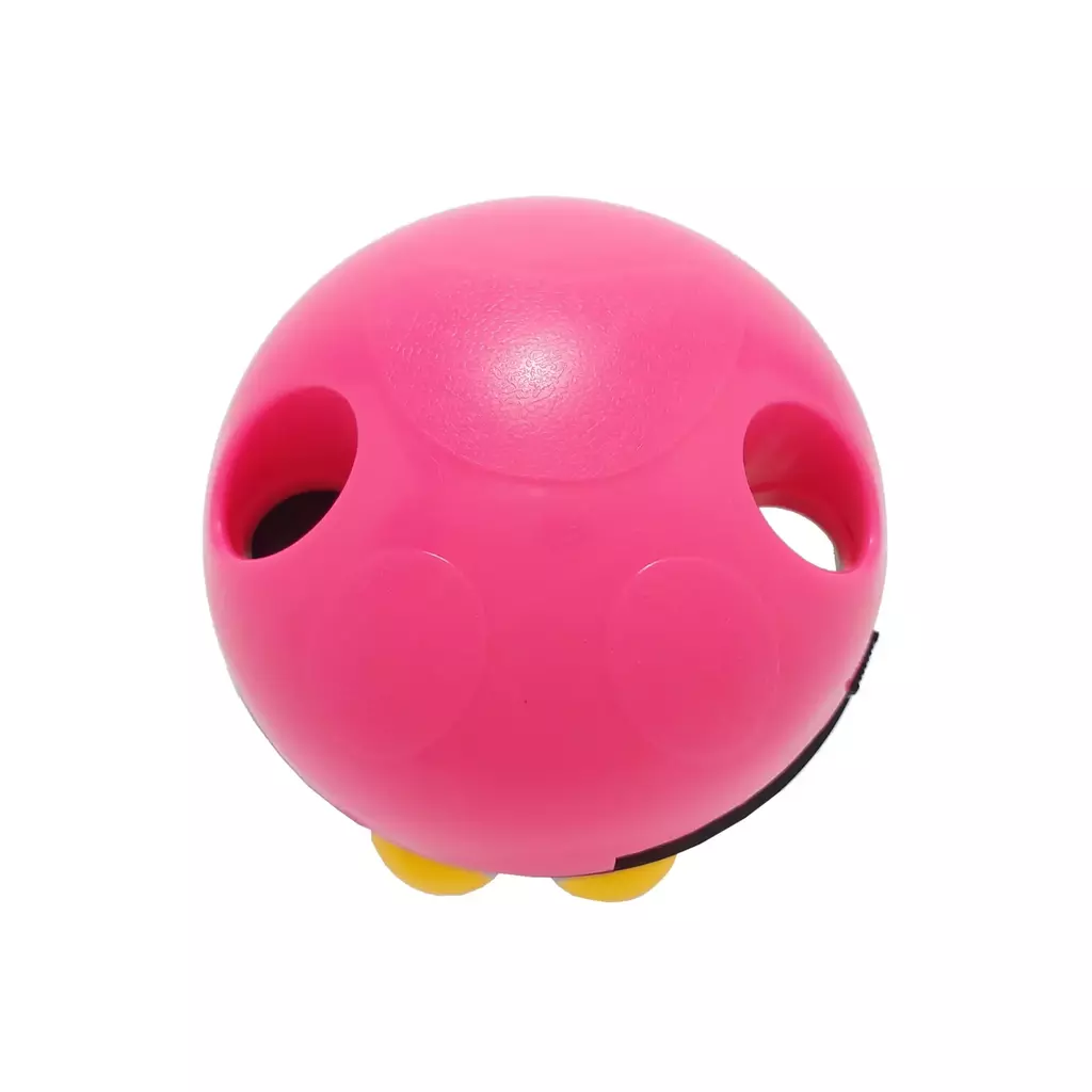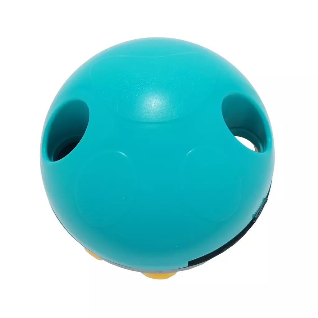 Dentro dele é possível colocar ração ou petisco, para que seja liberado aos poucos durante a brincadeira. Na lateral do brinquedo há uma trava para controlar a liberação do petisco ou da ração.